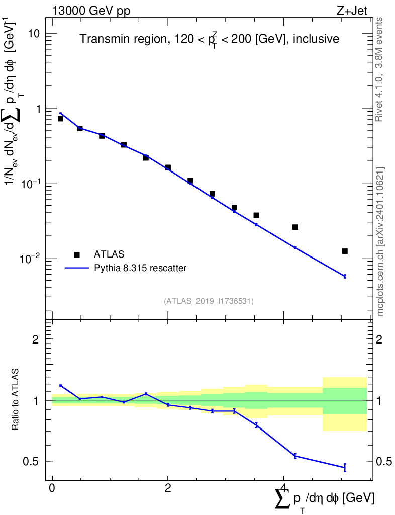 Lines: data, pythia8 8.315 rescatter |