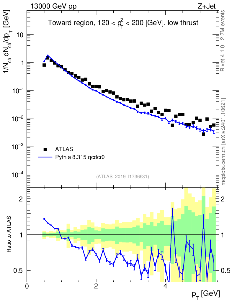 Lines: data, pythia8 8.315 qcdcr0 |
