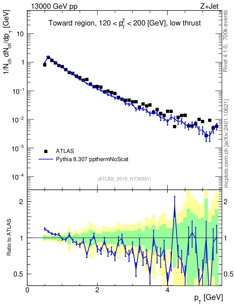 Lines: data, pythia8 8.307 ppthermNoScat |