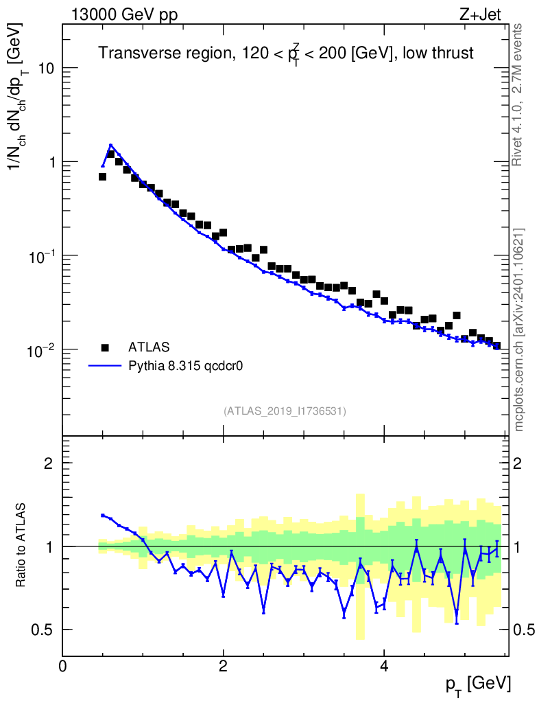 Lines: data, pythia8 8.315 qcdcr0 |