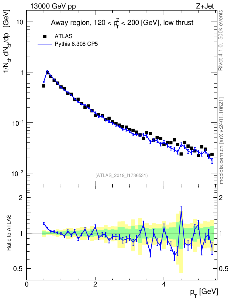 Lines: data, pythia8 8.308 CP5 |
