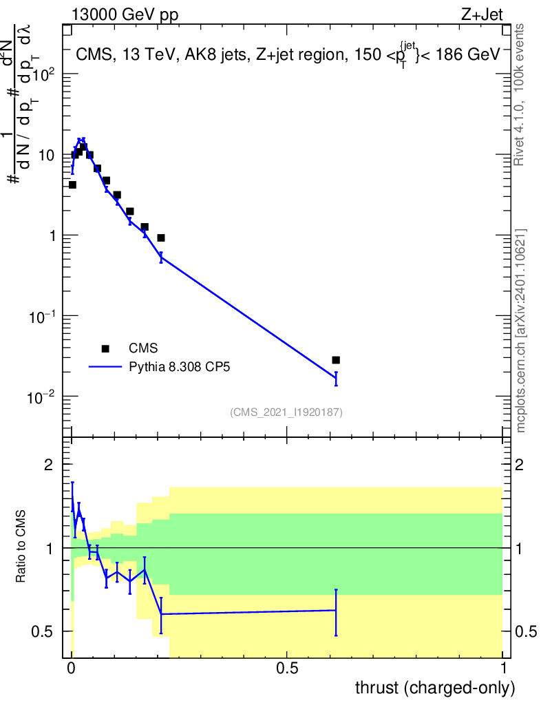 Lines: data, pythia8 8.308 CP5 |
