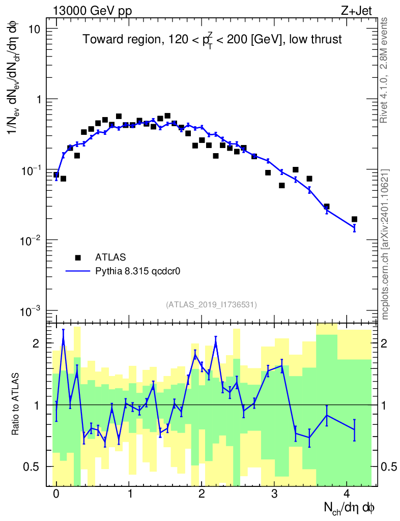 Lines: data, pythia8 8.315 qcdcr0 |