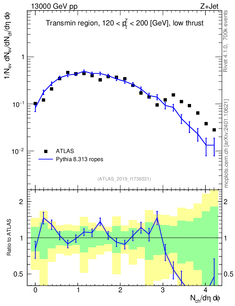 Lines: data, pythia8 8.313 ropes |