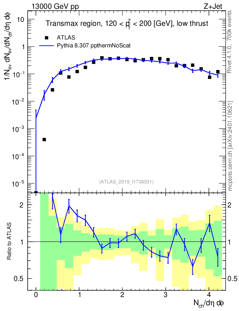 Lines: data, pythia8 8.307 ppthermNoScat |