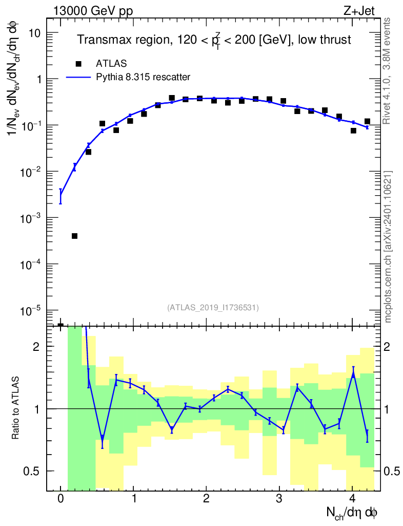 Lines: data, pythia8 8.315 rescatter |