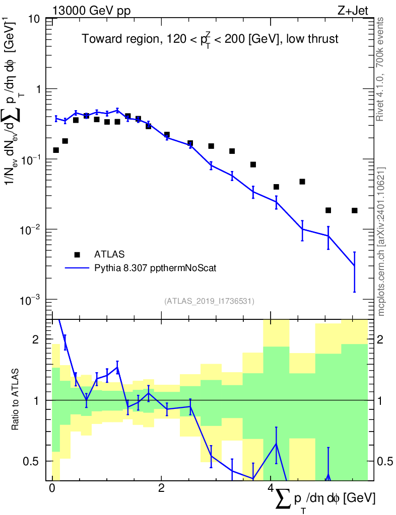 Lines: data, pythia8 8.307 ppthermNoScat |