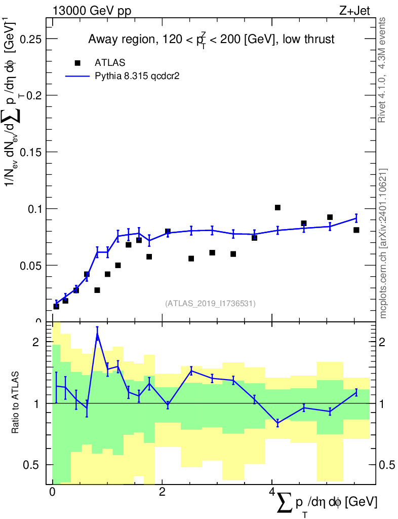 Lines: data, pythia8 8.315 qcdcr2 |