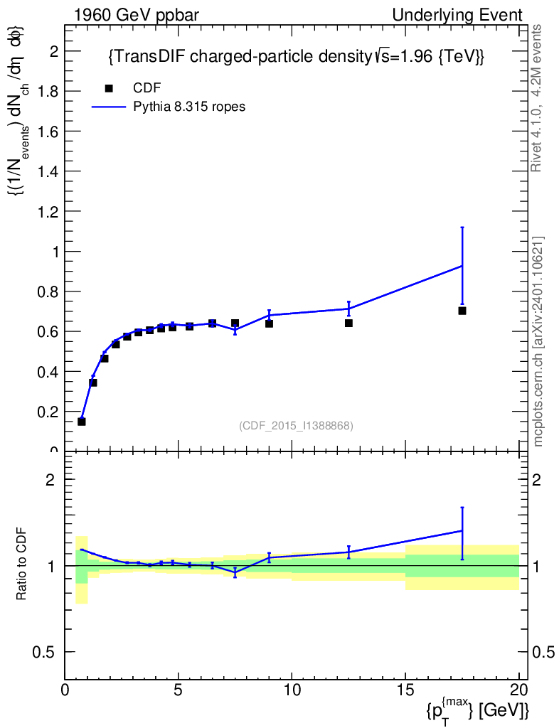 Lines: data, pythia8 8.315 ropes |