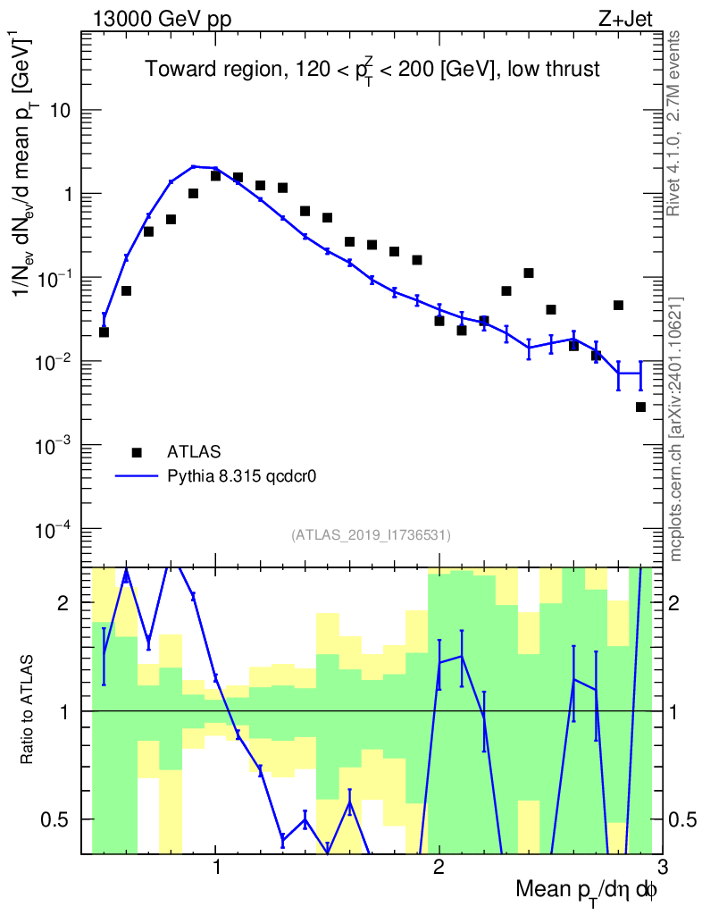 Lines: data, pythia8 8.315 qcdcr0 |