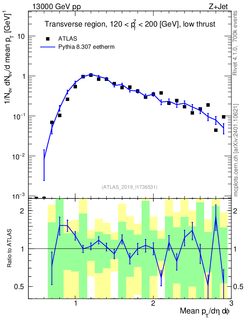 Lines: data, pythia8 8.307 eetherm |