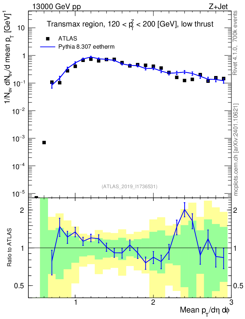 Lines: data, pythia8 8.307 eetherm |