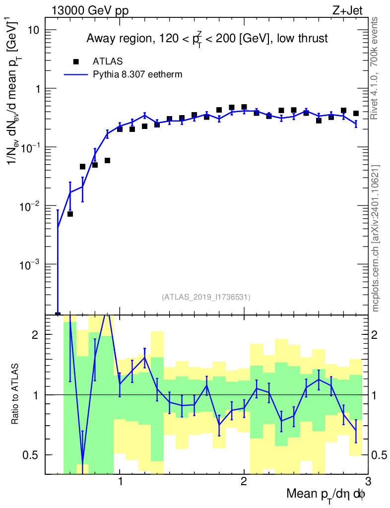 Lines: data, pythia8 8.307 eetherm |