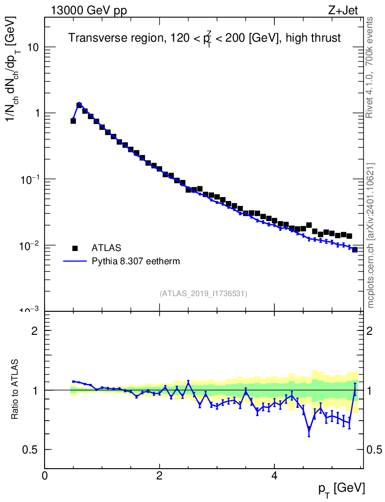 Lines: data, pythia8 8.307 eetherm |