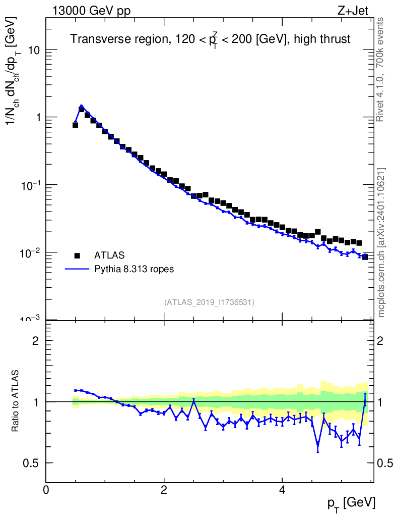 Lines: data, pythia8 8.313 ropes |