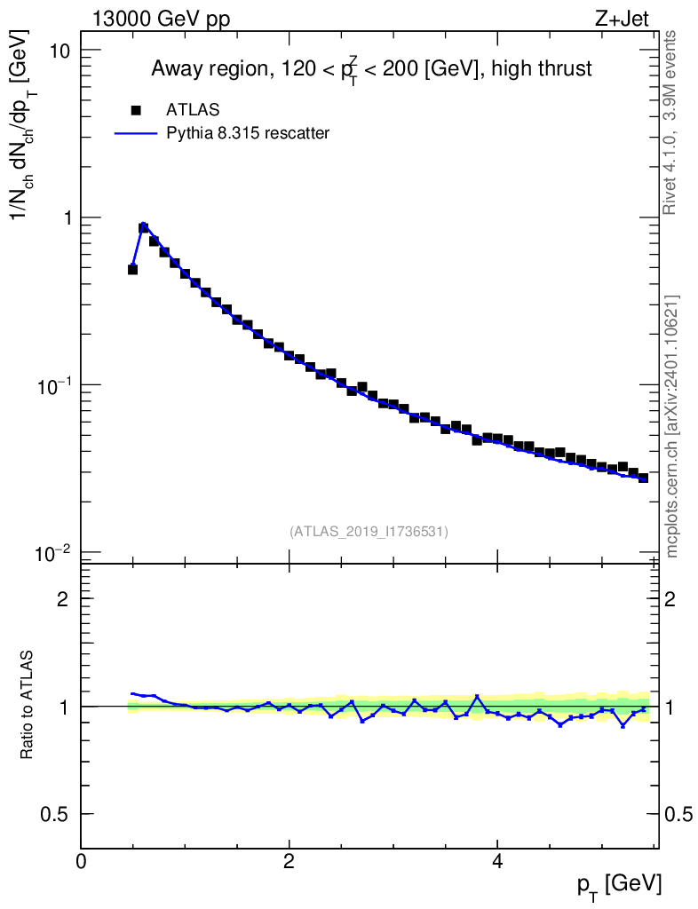 Lines: data, pythia8 8.315 rescatter |