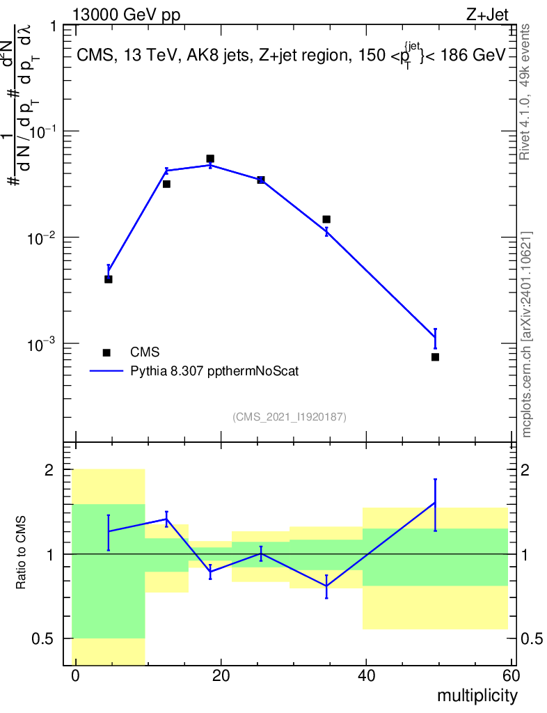 Lines: data, pythia8 8.307 ppthermNoScat |