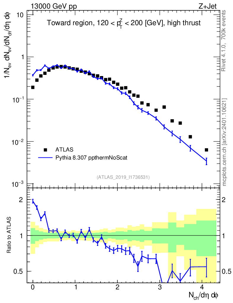 Lines: data, pythia8 8.307 ppthermNoScat |