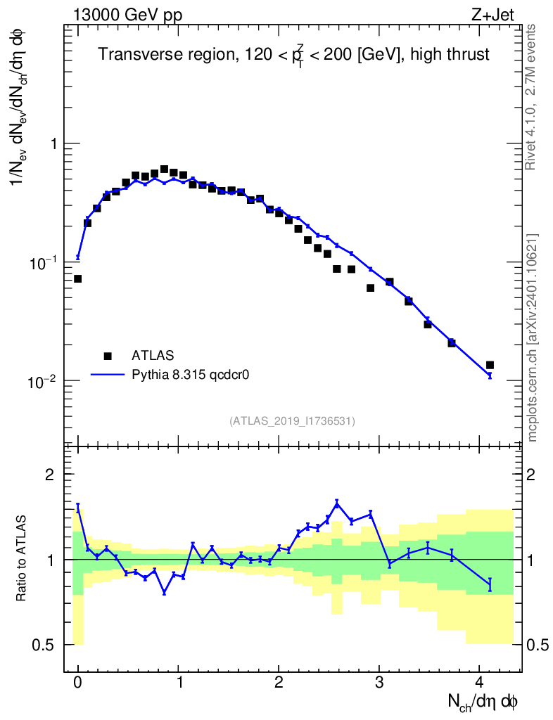 Lines: data, pythia8 8.315 qcdcr0 |