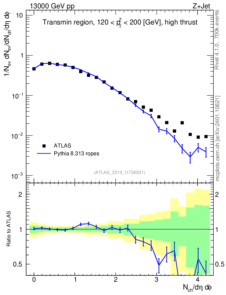 Lines: data, pythia8 8.313 ropes |