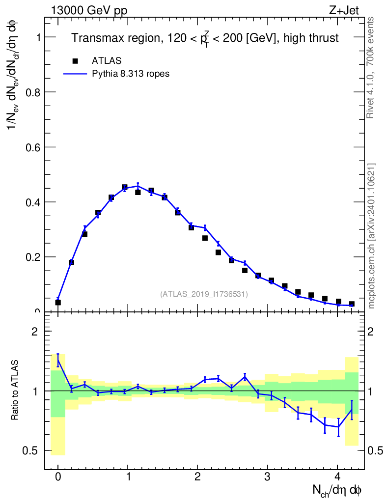 Lines: data, pythia8 8.313 ropes |