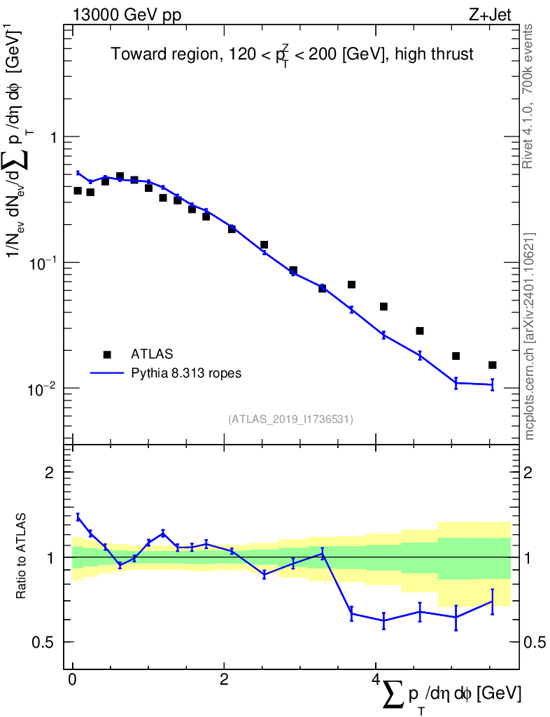 Lines: data, pythia8 8.313 ropes |
