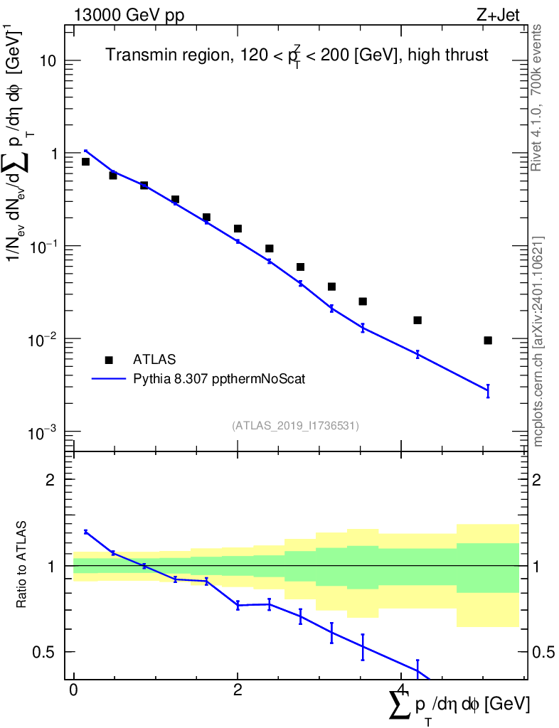 Lines: data, pythia8 8.307 ppthermNoScat |