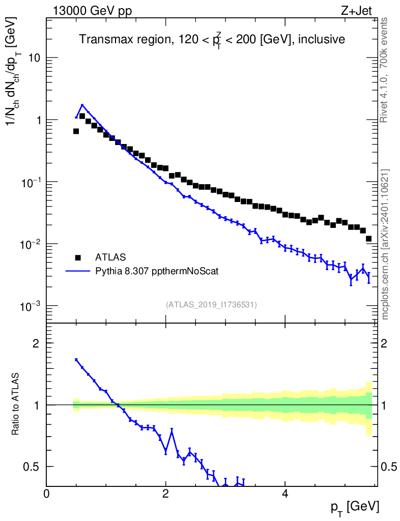 Lines: data, pythia8 8.307 ppthermNoScat |