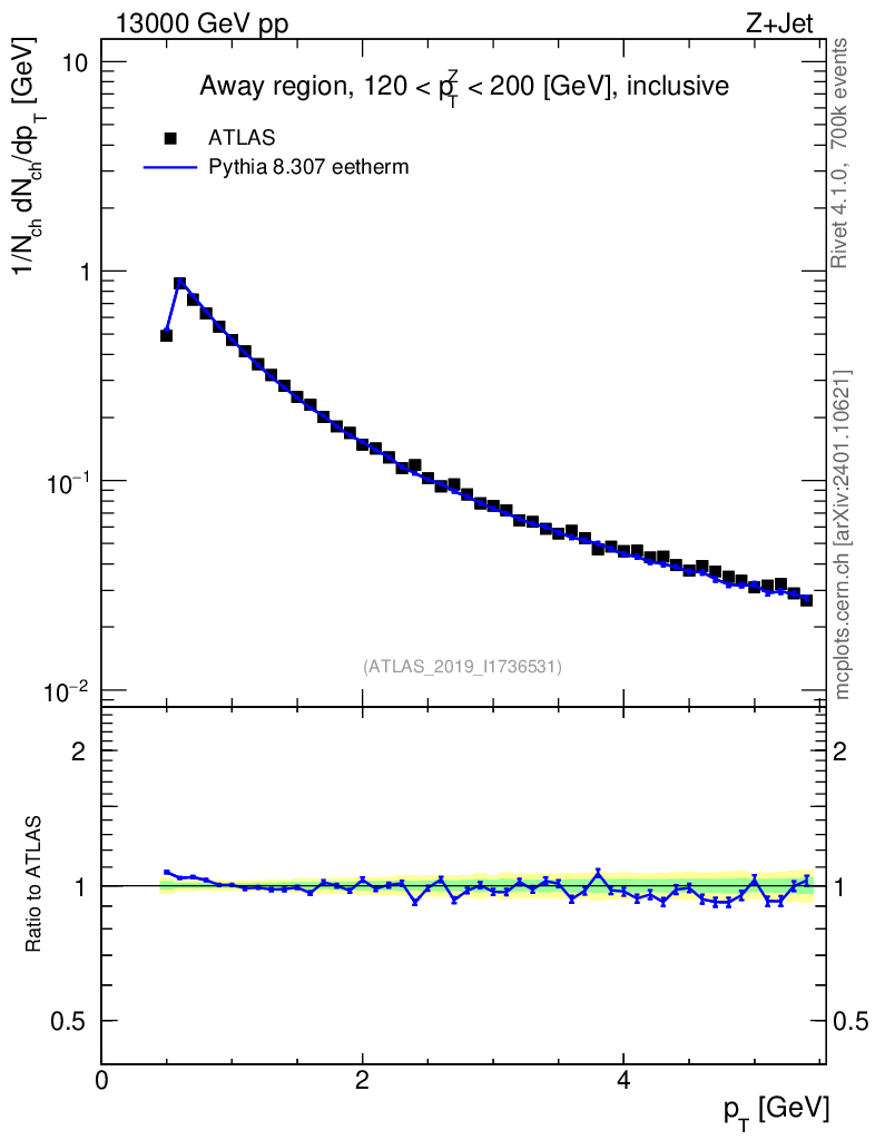Lines: data, pythia8 8.307 eetherm |