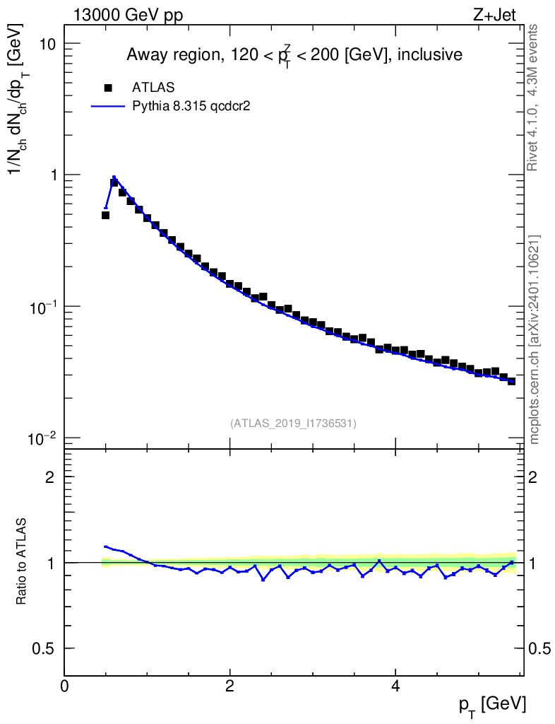 Lines: data, pythia8 8.315 qcdcr2 |