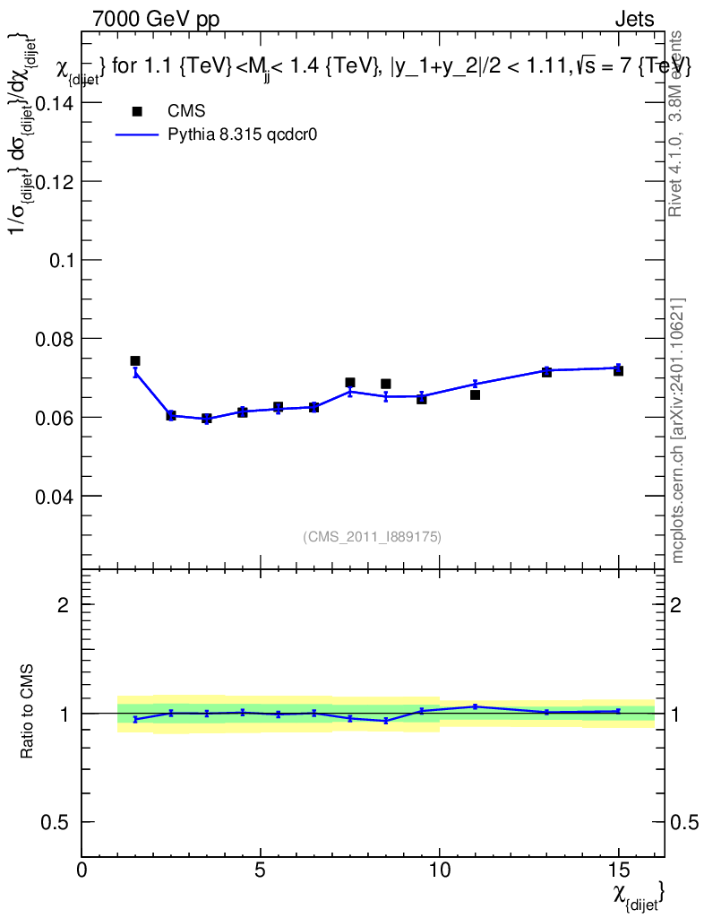 Lines: data, pythia8 8.315 qcdcr0 |