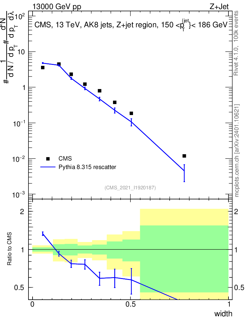 Lines: data, pythia8 8.315 rescatter |