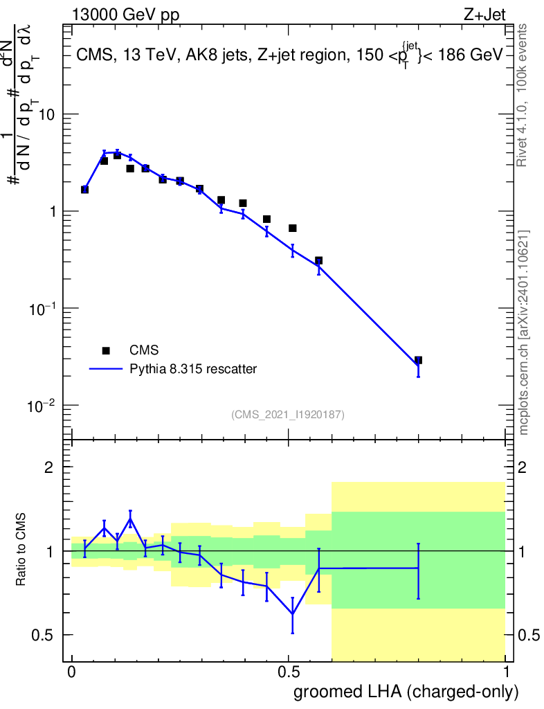 Lines: data, pythia8 8.315 rescatter |