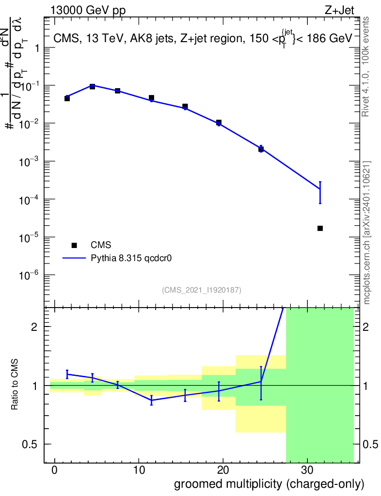 Lines: data, pythia8 8.315 qcdcr0 |