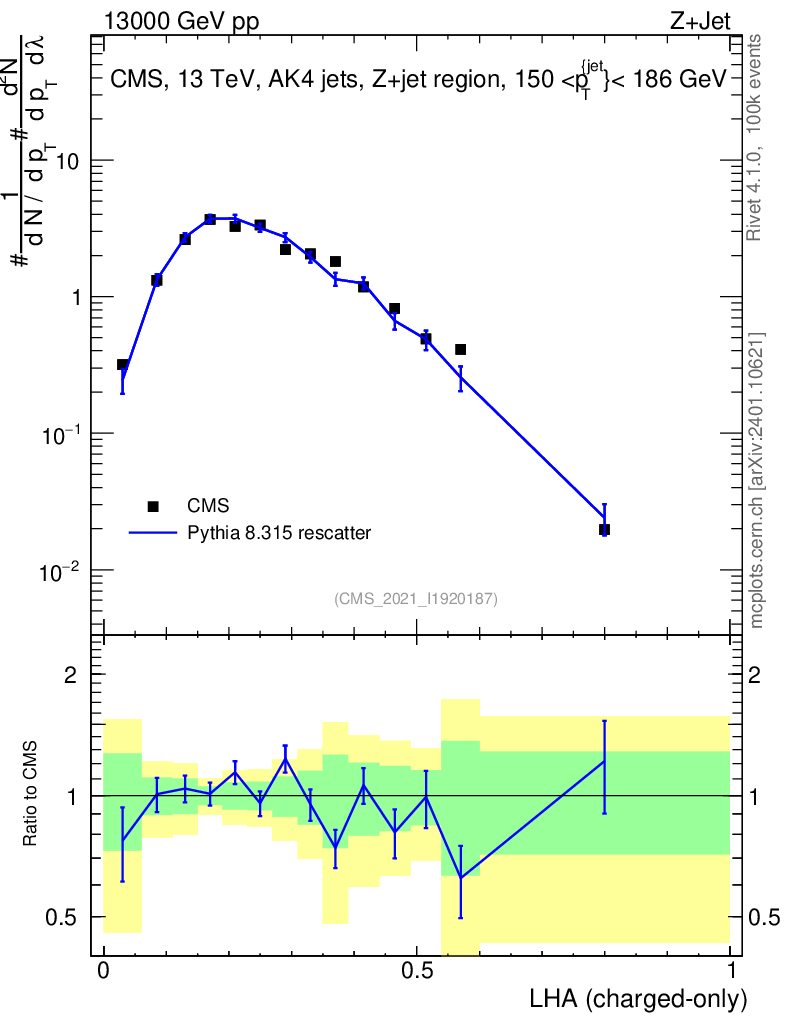 Lines: data, pythia8 8.315 rescatter |