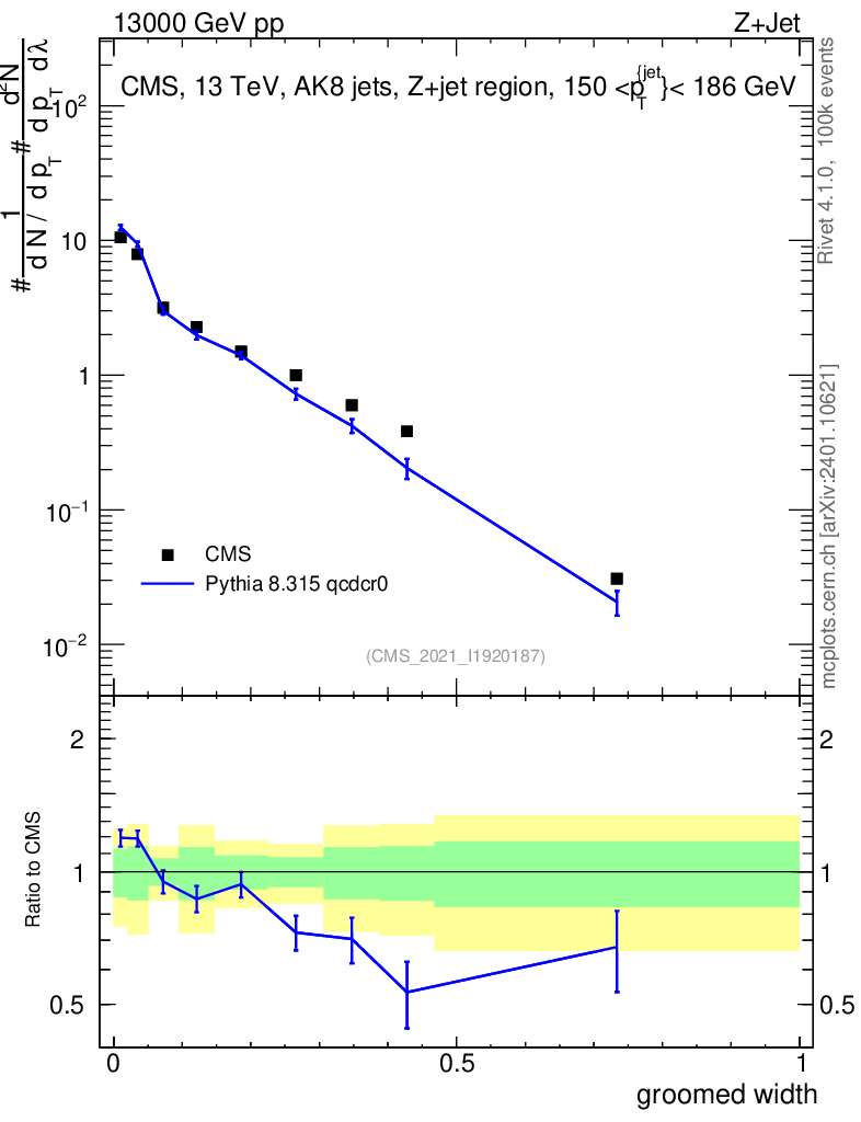 Lines: data, pythia8 8.315 qcdcr0 |