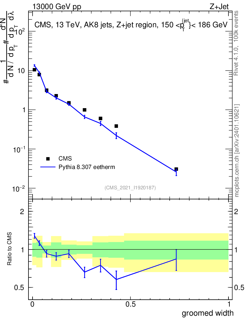 Lines: data, pythia8 8.307 eetherm |