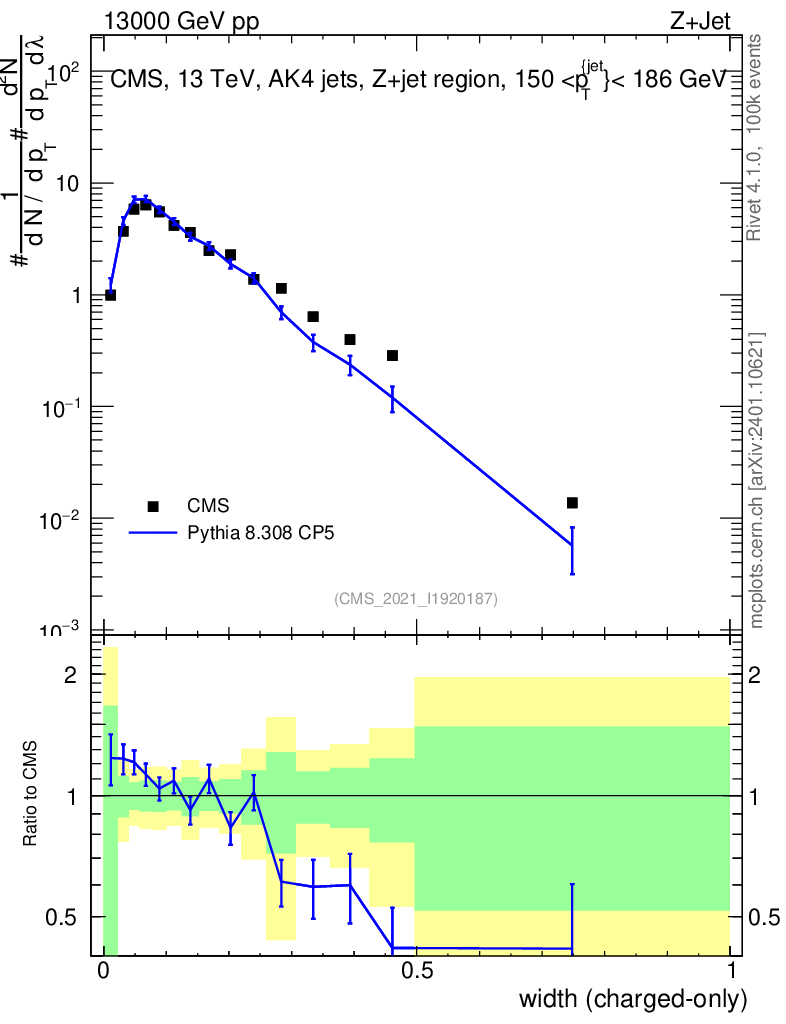 Lines: data, pythia8 8.308 CP5 |
