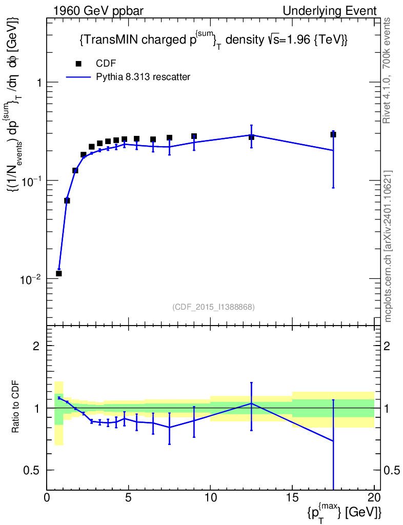 Lines: data, pythia8 8.313 rescatter |