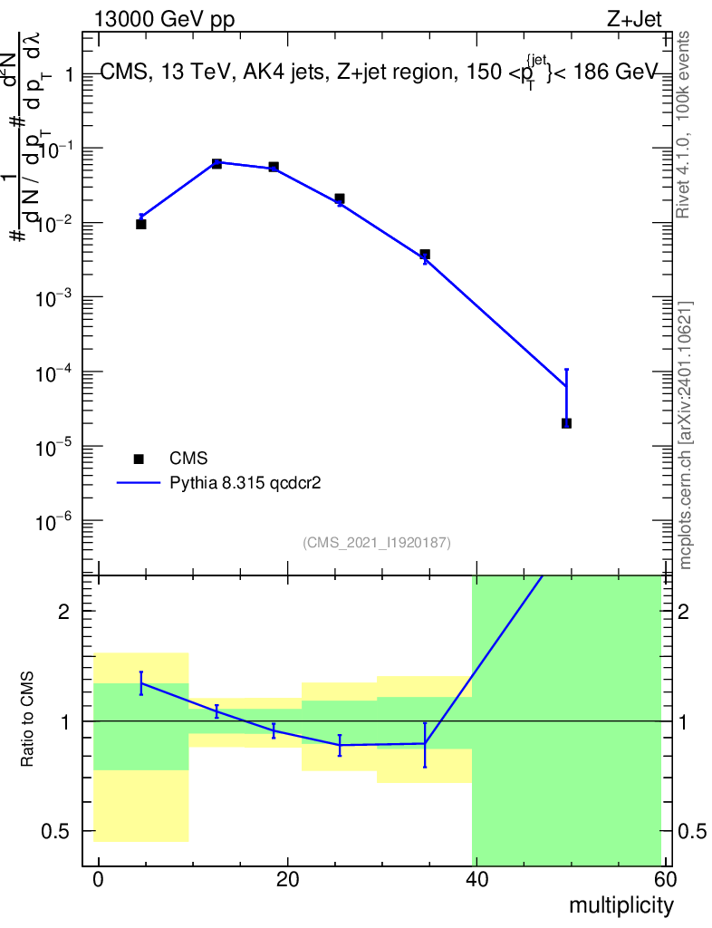 Lines: data, pythia8 8.315 qcdcr2 |