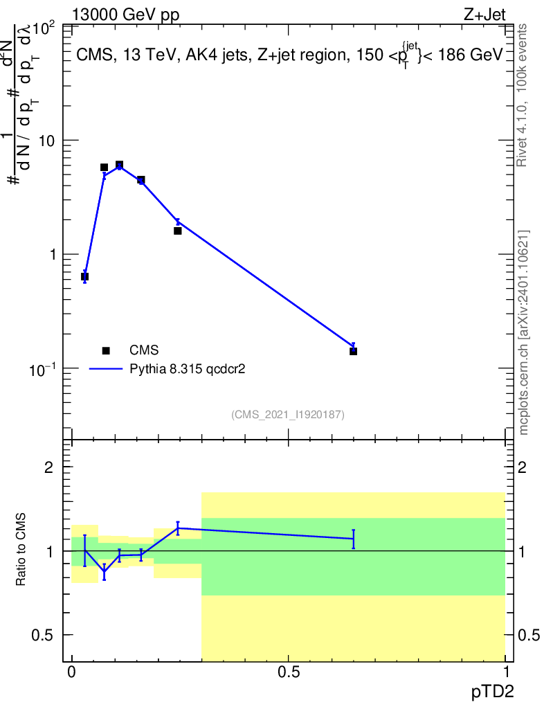 Lines: data, pythia8 8.315 qcdcr2 |