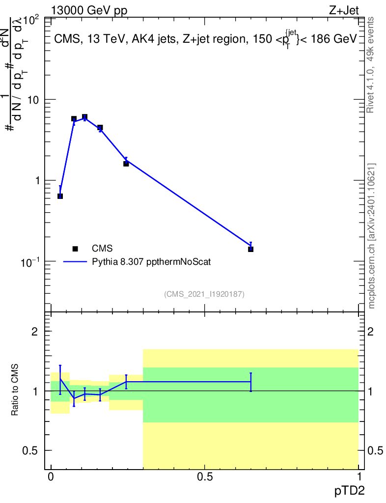 Lines: data, pythia8 8.307 ppthermNoScat |