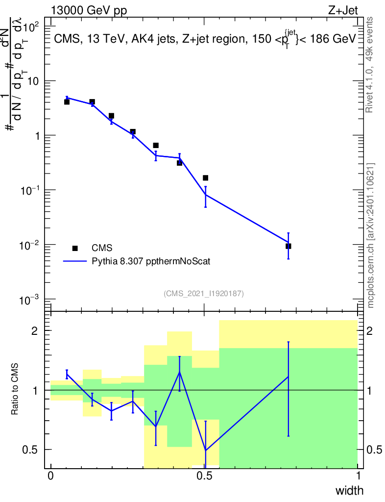 Lines: data, pythia8 8.307 ppthermNoScat |