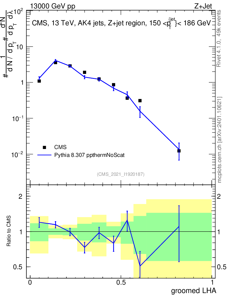 Lines: data, pythia8 8.307 ppthermNoScat |