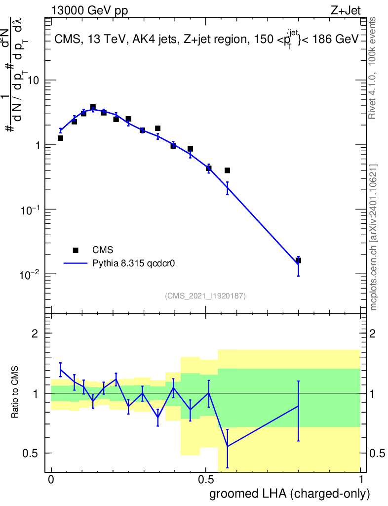 Lines: data, pythia8 8.315 qcdcr0 |