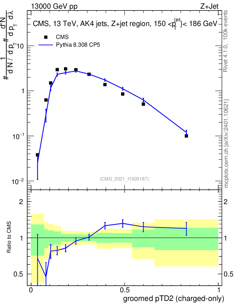 Lines: data, pythia8 8.308 CP5 |