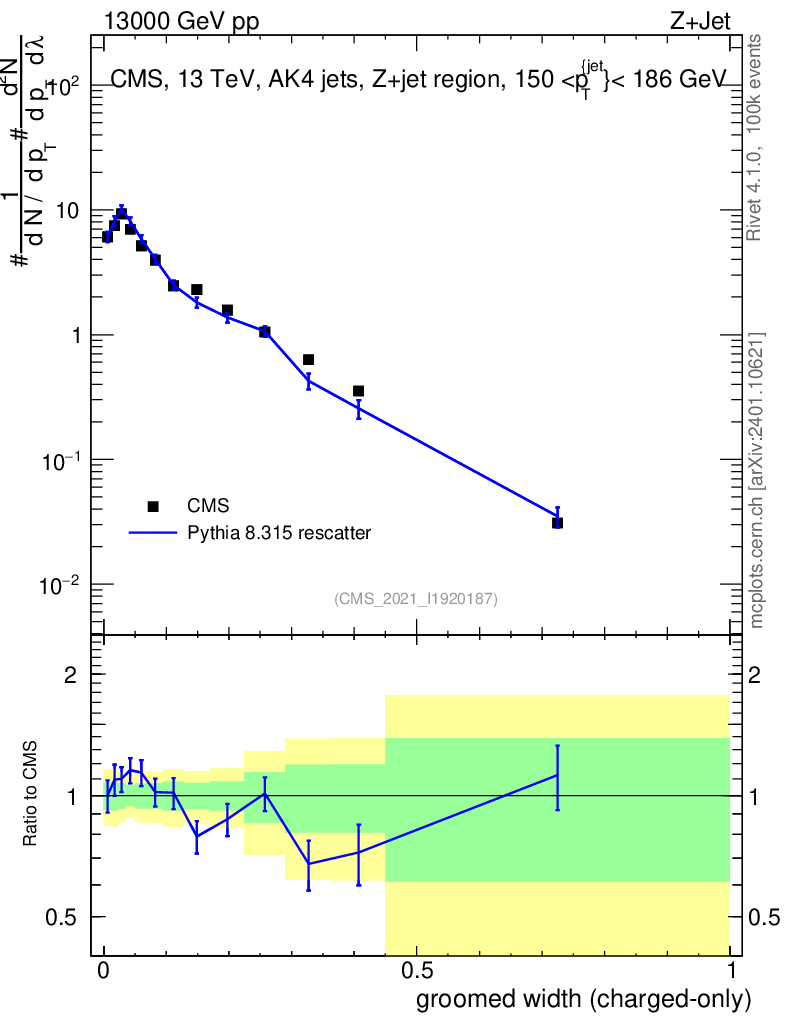 Lines: data, pythia8 8.315 rescatter |