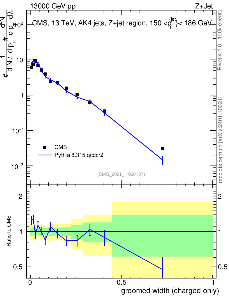 Lines: data, pythia8 8.315 qcdcr2 |