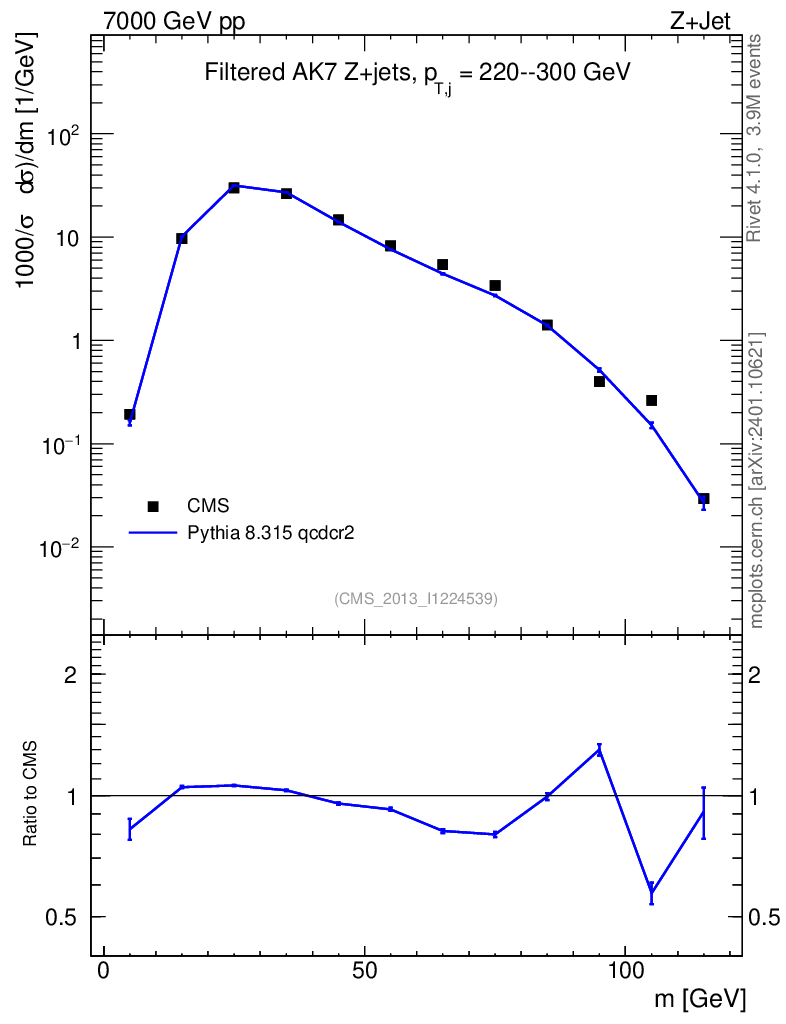 Lines: data, pythia8 8.315 qcdcr2 |