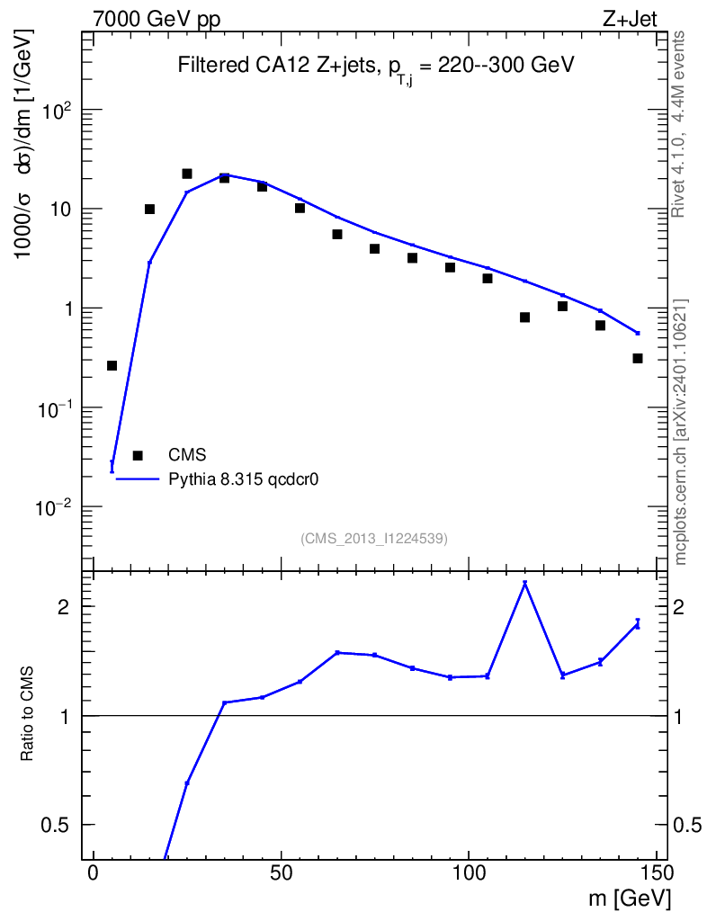Lines: data, pythia8 8.315 qcdcr0 |